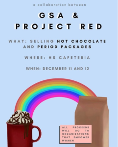 Service & Advocacy Period Packages distribution w/ GSA Project Red collaborated with GSA during the Holiday season and made the times a little more festive by selling Hot chocolate during lunch time. GSA put together period packages that were sold to the ISB community and used the money earned for